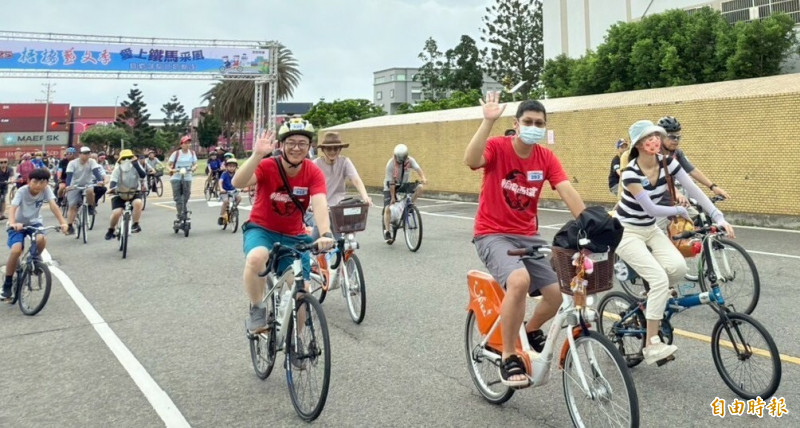 梧棲五七藝文季-鐵馬采風暨廉能透明宣導活動,在大雨之前出發。(記者張軒哲攝)