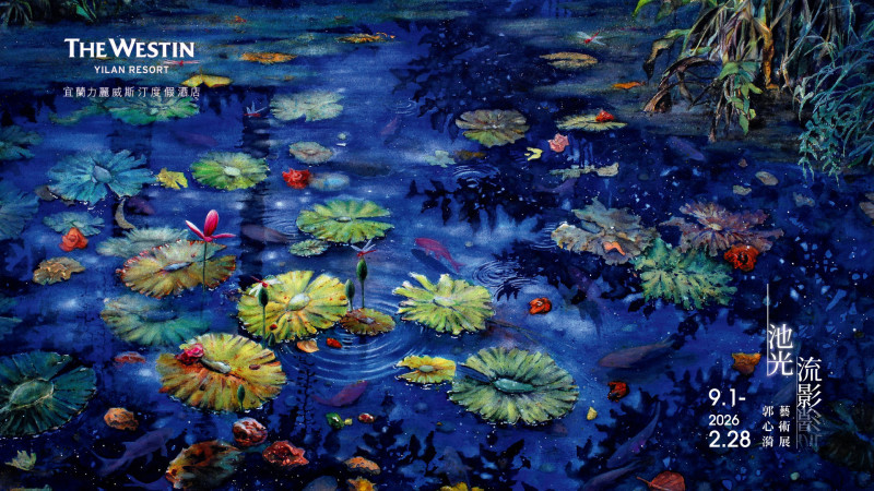 展覽精選郭心漪6幅以「池塘」創作為主題的代表作,與威斯汀園區內豐富的自然生態池相互輝映,交織出光影流動與心靈沉澱的寧靜氛圍。酒店更將藝術融入旅宿體驗,把最具特色的雙臥室泳池別墅打造為「池光流影主題房」,讓旅人在宜蘭靜謐山水之間,體驗藝術與度假的交融。