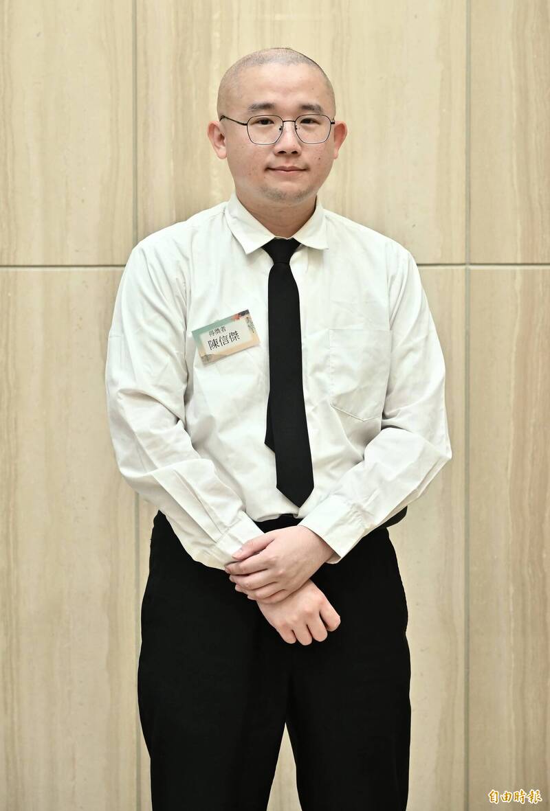第二十一屆林榮三文學獎短篇小說獎二獎陳信傑。(記者陳奕全攝)