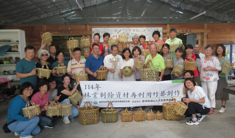 〔記者黃淑莉/雲林報導〕雲林有許多林地是巨竹、麻竹混生的老竹林,涵養水源功能不足,林業及自然保育署南投分署推動「退竹還林」,並與湖山水庫人文生態保護協會合作,邀請竹藝專家開辦竹藝創作研習課程,傳承竹工藝,並把伐除的廢竹變成文創藝品,學員手編獨一無二的竹藝作品很有成就感。