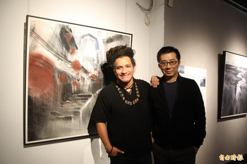 祕魯水彩畫家Nicola’s Lo’pez(左)是竹東名冠藝術館藝術總監陳昭賢(右)慶祝31年館慶特邀的巨匠。(記者黃美珠攝)