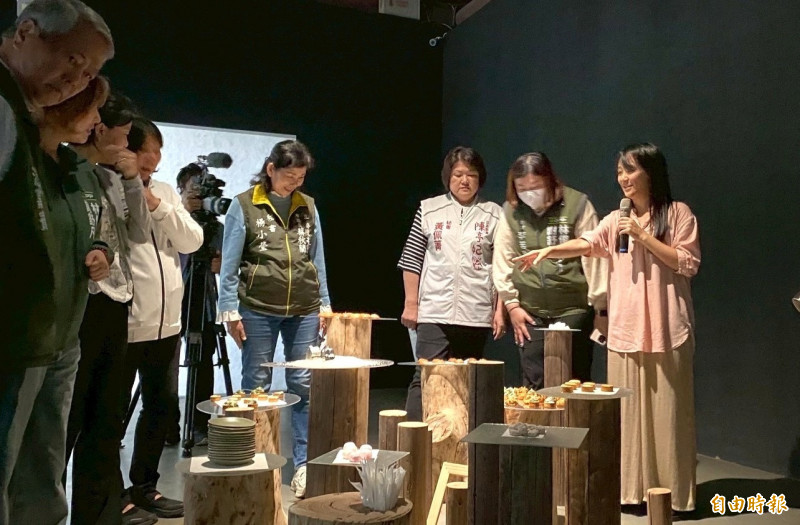 蕭壠國際藝術村駐村藝術家王盈之(右一)為駐村成果展導覽解說。(記者楊金城攝)