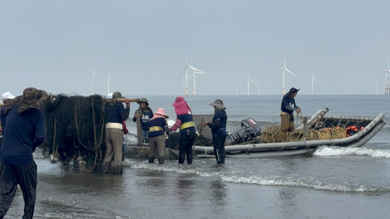 竹南后厝仔牽罟,成首件登錄苗縣「傳統知識與實踐類」無形文資。(苗縣府提供)