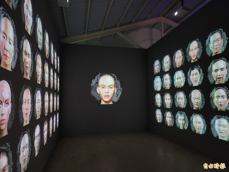「夏娃克隆系列:林珮淳的AI伊甸園」展出《夏娃克隆大偶像II》作品。(記者周敏鴻攝)