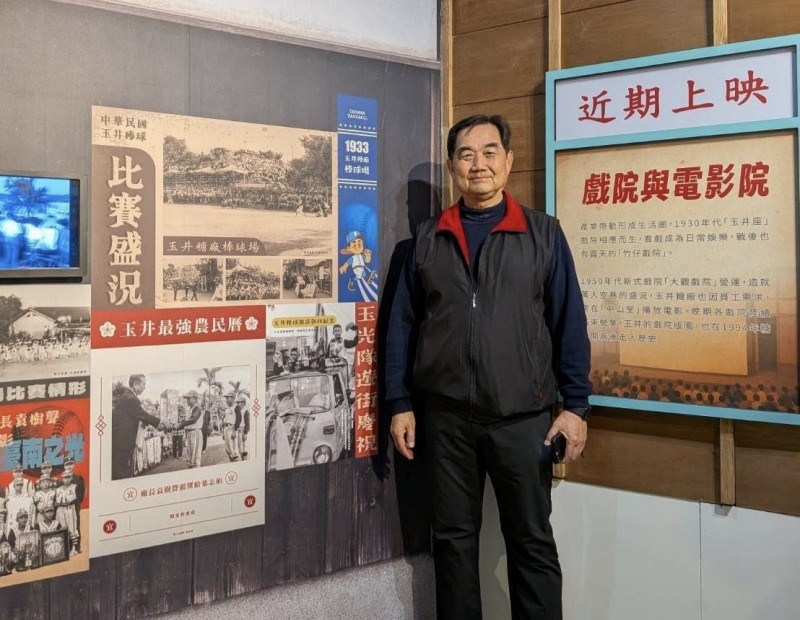 參觀後,眾人在展示自身年少打球身影的展板前合影留念,文化局強調,透過展覽改造,噍吧哖園區讓地方記憶得以再現,玉井在台灣棒球史中的角色也被重新看見。