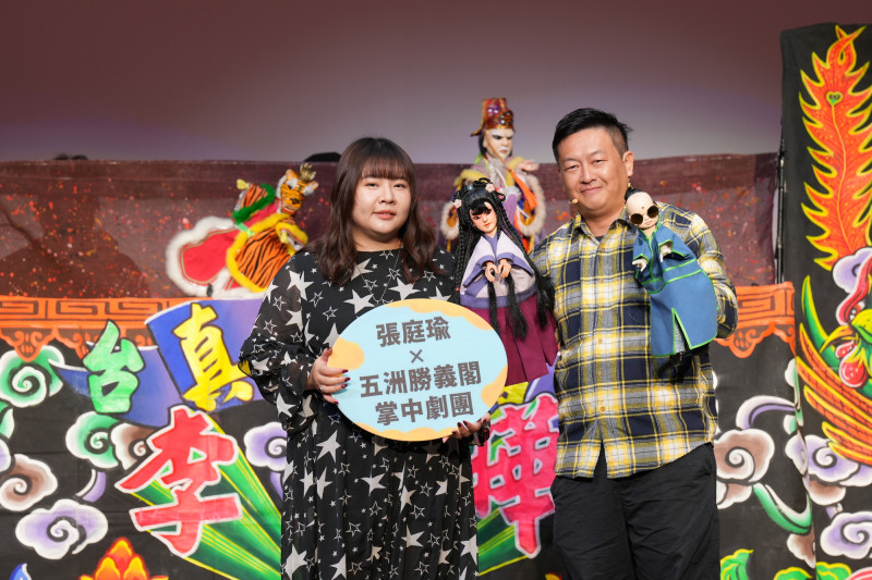 特優入選者張庭瑜(左)與五洲勝義閣掌中劇團團長曾嘉民合照。(傳藝中心提供)