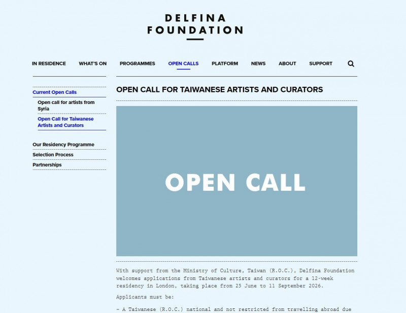 2026年戴芬娜基金會徵選台灣藝術家或策展人駐村計畫公開徵選公告。(文化部駐英國代表處文化組提供)