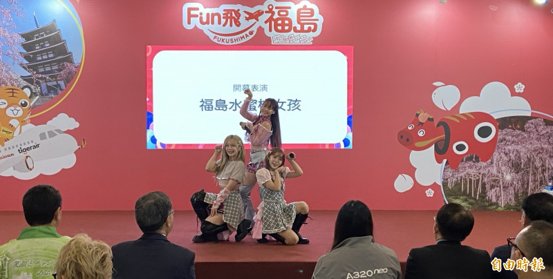 「Fun飛福島」今(24)日開展,由「福島水蜜桃女孩」開幕表演。(記者周幸叡攝)