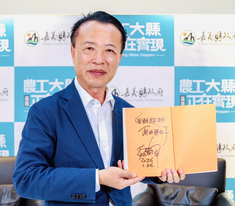 嘉義縣長翁章梁簽名《青年的四個大夢》100本送給捐款人。(嘉義縣政府提供)