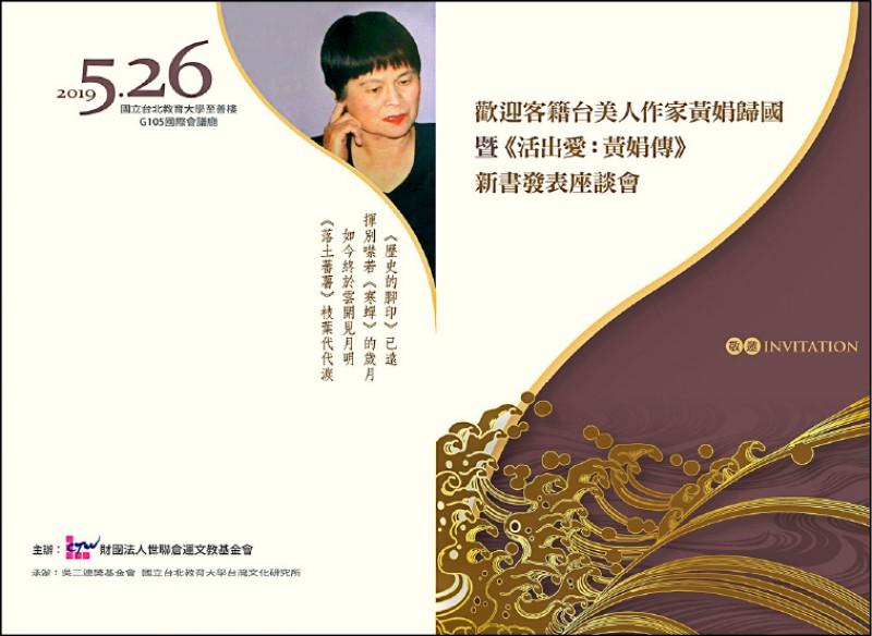 《活出愛:黃娟傳》新書發表座談會」週日舉行。(世聯倉運文教基金會/提供)《活出愛:黃娟傳》新書發表座談會」週日舉行。(世聯倉運文教基金會/提供)