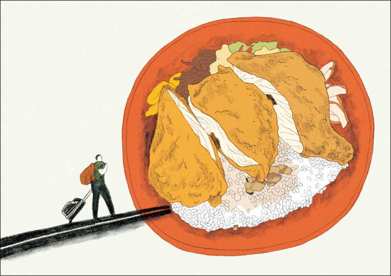 之後有一次坐飛機,和鄰座的日本人交談。這位大哥年紀約三十五、六歲,聊著聊著,談起自己的生意:「最近呀,賣排骨飯的店挺流行的,有吧檯的那種,你曉得嗎?」