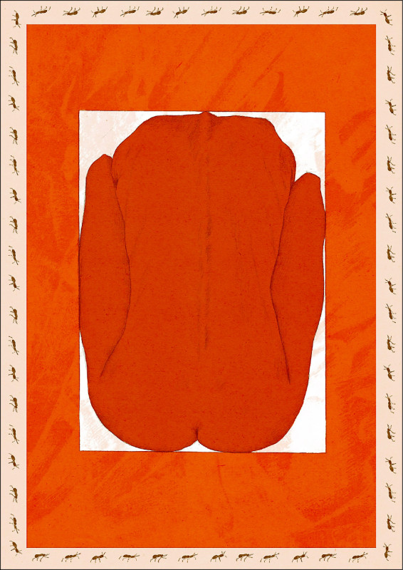 她在做版畫的時候,成為了自己的旁觀者。人不倚賴外在之物,就無法觀照自己的整體,看不到自己的正面和背面。專注作畫的時候,她其實是在聚精會神地成為不是自己的人。那時候,一直以來像蛞蝓那樣吸吮在她身上的目光,就會慢慢地逐一消褪。在瞬間靈光乍現的縫隙裡,她目睹一個寧謐的世界,她在以前從不曾發現。