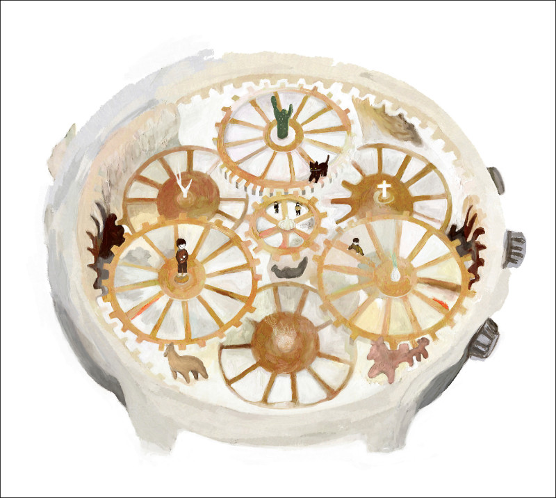 原諒我總是那麼慢熟,慢到可能等你死後才用一支錶來憑弔,校準我與世人與你親疏的時差。錶不等同送鐘或送終,只是萬物需要一個盡頭。時間滴答向前,將來輪到我死了,我會留下些什麼,給你妳祢編織記憶──復活我。●