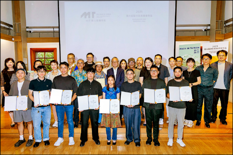 文化部長李遠(第2排中)與2025「Made In Taiwan新人推薦特區」暨「原住民族藝術特區」獲選藝術家、MIT評審委員、媒合畫廊代表等合影。(文化部提供)
