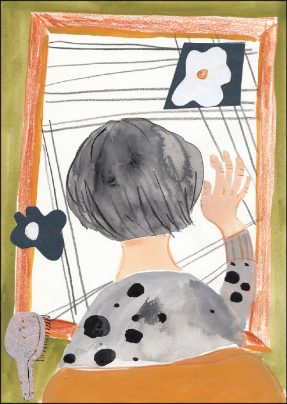 我正在練習將頭髮的顏色變化,當成衣服的顏色與紋路來適應,現今衣服鞋子配色時,會搭配原生的黑白髮,在協調中嘗試找到屬於自己的風味,看看能不能在老化中奏出和諧的交響樂。