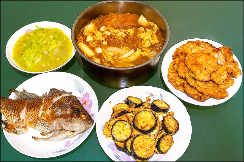 今晚的菜色有蔬菜燴冬粉、炸豬排、櫛瓜炒蛋、香煎吳郭魚、清炒絲瓜。上市場買菜備料雖然很辛苦,但滿桌子的料理就是滿滿為家人備餐的心意。(文、圖/Sally Wang)
