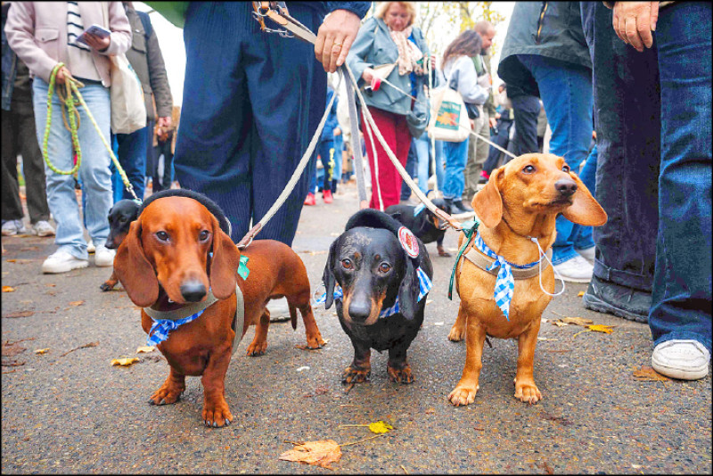 2025年11月初,參與巴黎臘腸犬遊行的可愛狗狗。(資料照,法新社)