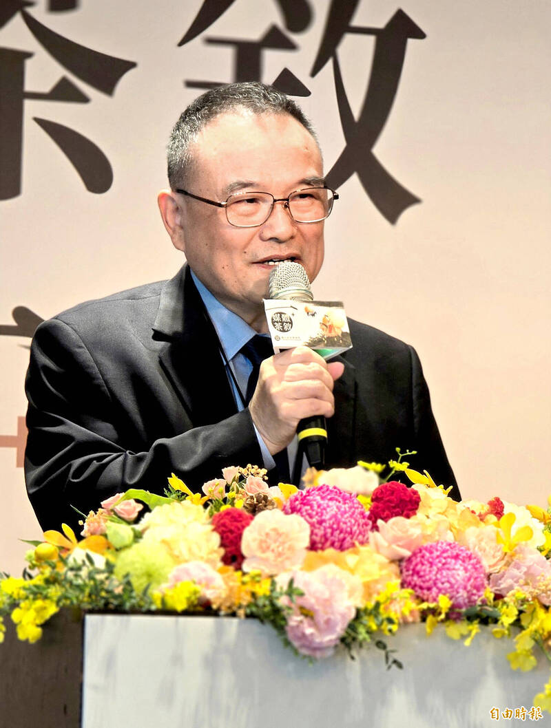 故宮院長蕭宗煌在年終媒體茶敘報告。(記者凌美雪攝)