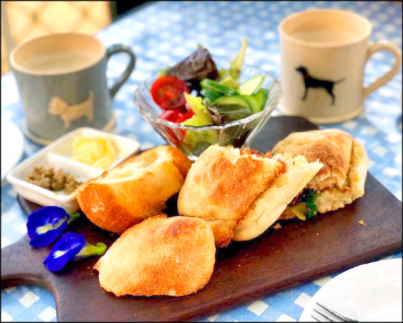 週六的早晨天氣微涼很舒爽,老婆取出在普羅旺斯住宿酒莊採買的橄欖醬、準備幾片巧巴達麵包,並摘了些自家種的生菜,料理出一道「回味普羅旺斯的早餐」。
