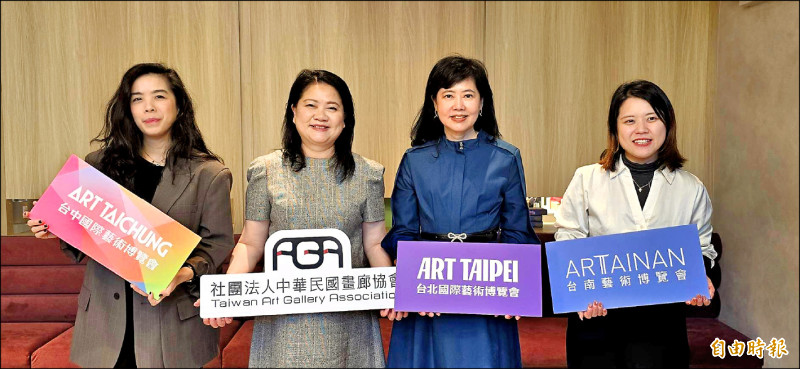 畫協媒體茶敘,左起ART TAIPEI藝術總監姚妤萱、畫協理事長陳菁螢、祕書長游文玫、新創行銷總監陳怡文。(記者凌美雪攝)