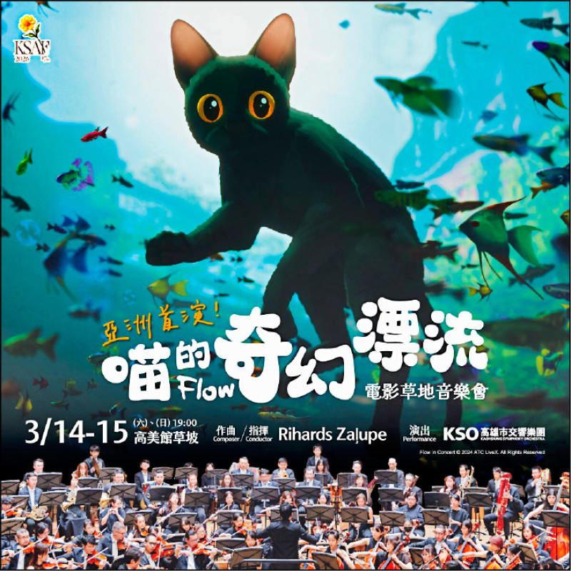 榮獲奧斯卡、凱薩電影獎與金球獎「最佳動畫長片」三冠王的拉脫維亞電影《喵的奇幻漂流》(Flow),應高雄春天藝術節草地音樂會邀請,3月14、15日晚上7點將在高雄美術館草坡展開亞洲首演,高市交將現場演奏,原作曲暨指揮里哈德斯.扎柳佩(Rihards Zaļupe)將親自登台,帶領觀眾走入一場橫越大自然與情感的奇幻航程。