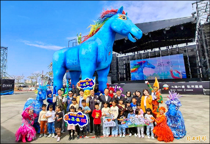 〔記者林宜樟/嘉義報導〕2026年台灣燈會將於3月3日起在嘉義縣登場,縣府邀請紙風車劇團帶來客家親子劇《雨馬》,昨(1)日高10公尺、長13公尺的「雨馬」巨型裝置亮相,活動期間將演出《雨馬》精華版及燈光秀與靜態展示,「雨馬」巨型裝置也將參與3月7日台灣燈會狂歡慶典「TEAM TAIWAN大遊行」。