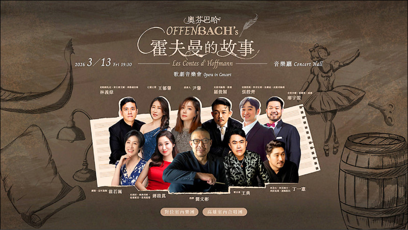 前夜推出奧芬巴哈《霍夫曼的故事》歌劇音樂會,由簡文彬指揮,攜手聲樂家蔣啟真等,與金鐘北影雙料影后尹馨,將音樂廳化身為虛實交錯的「歌劇版黑鏡」,在法國浪漫樂派作曲家奧芬巴哈旋律中,走入德國浪漫主義大師E.T.A.霍夫曼筆下的愛情寓言世界。