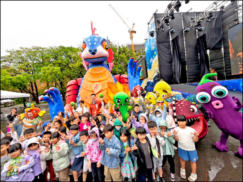 客委會表示,《燈怪》結合3D動畫背景、全偶裝演出與原創音樂。以海洋與陸地共生為背景,蘊含客家人敬天惜物、固守家園的信仰精神與文化價值,透過瓜族與燈怪的故事,傳遞守護環境、珍惜家園的理念。演出內容約有8成以客語呈現,4面大型螢幕同步播放中文字幕,並穿插華語對話,讓觀眾輕鬆理解劇情。(文圖:記者廖雪茹)