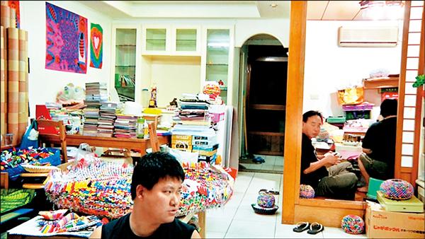 飯後,立夫(左)例行展開他心愛的摺紙作業,而「立夫爸爸」(中)則如常在旁看守。(牽猴子/提供)飯後,立夫(左)例行展開他心愛的摺紙作業,而「立夫爸爸」(中)則如常在旁看守。(牽猴子/提供)