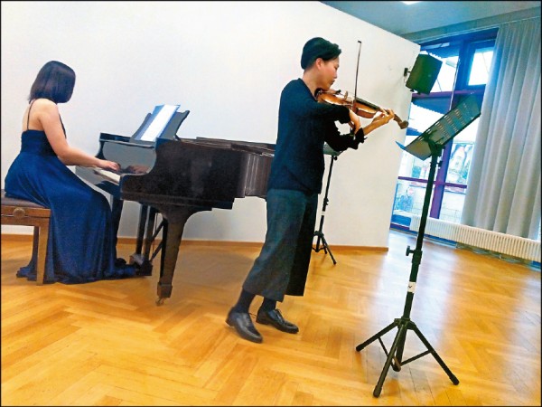 人權音樂會現場由馮荷軒(右)演奏小提琴,沈妤霖演奏鋼琴。(劉威良/提供)
